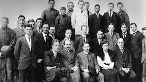 Book with first record of founders meeting shown.